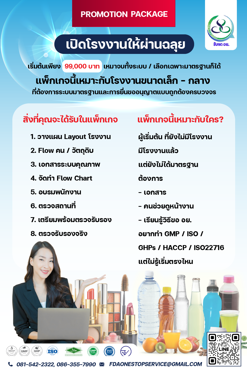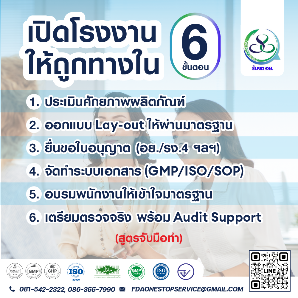 พร้อมดูแลตั้งแต่เริ่มต้นโรงงาน จนผ่านใบรับรองจริง